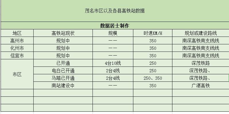 茂名的7个高铁站,其中4个站在规划建设,3个已开通