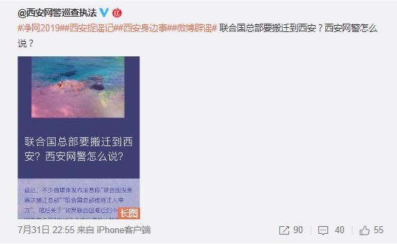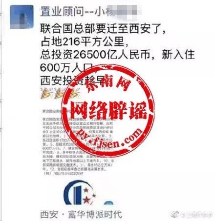 7月31日,西安网警辟谣,这是个假消息,联合国到现在为止从未讨论过搬迁总部问题。