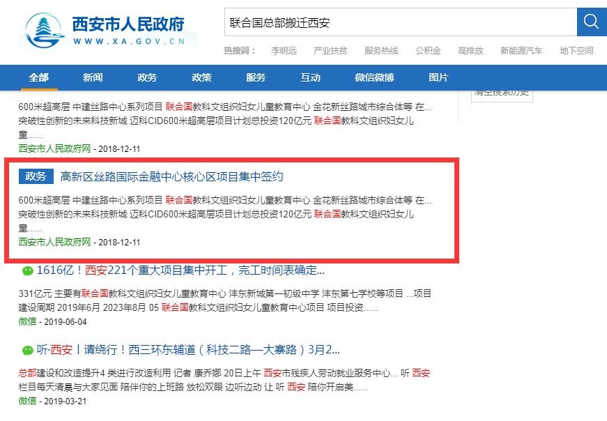网络辟谣举报平台记者登录西安市政府官方网站查询,关于联合国的项目,近期只有一项联合国教科文组织妇女儿童教育中心项目,该项目投资金额4亿元,位于丝路国际金融核心区南段,兴隆社区东侧,建筑面积约为3.5万平方米,项目是由中国国际文化传播中心与联合国教科文组织共同在中国设立的全球唯一的妇女与儿童教育中心。