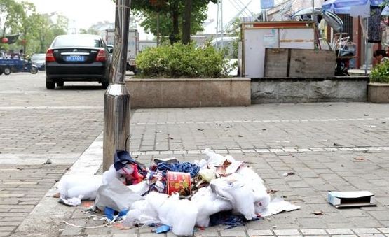 记者在商业街上行走了短短30米左右,发现道路两边晒满了周边商户的腊肉、衣服、毛巾、拖把等物,宽敞的街道俨然成为公共晒场。商业街两边的绿化带内,商户将各种杂物放在这里,场面杂乱无序。同时,商业街道路两侧停放的电动车、自行车也毫无顺序,杂乱无章。“商业街里虽有环卫工人打扫,但想把卫生搞好很难。”家住新城明珠的凌诚先生告诉记者,这两年虽然一直在推进“门前三包”,但还是有许多店铺不去落实。建议要继续加大力度,对落实不到位的店铺不仅要曝光,更要进行处罚。