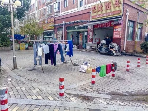 新城明珠商业街乱搭乱晒、出店经营现场突出。