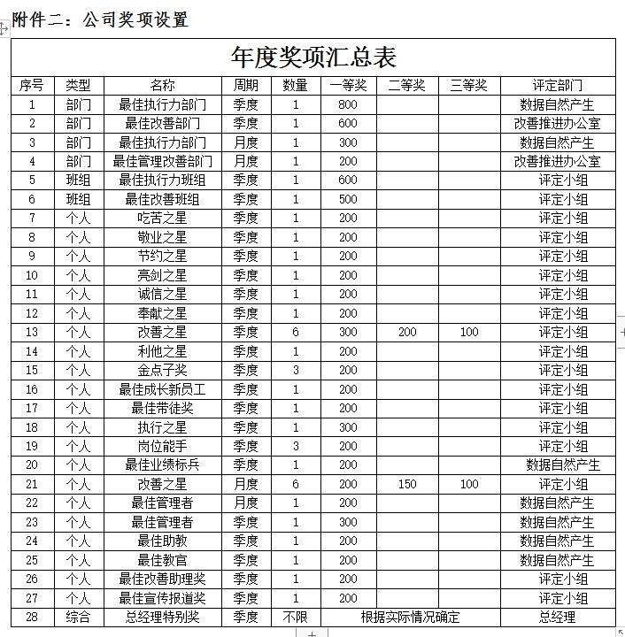 3) 评选结果通过季度改善会议颁奖并进行激励; 员工激励机制有哪些 员工奖励制度与方案