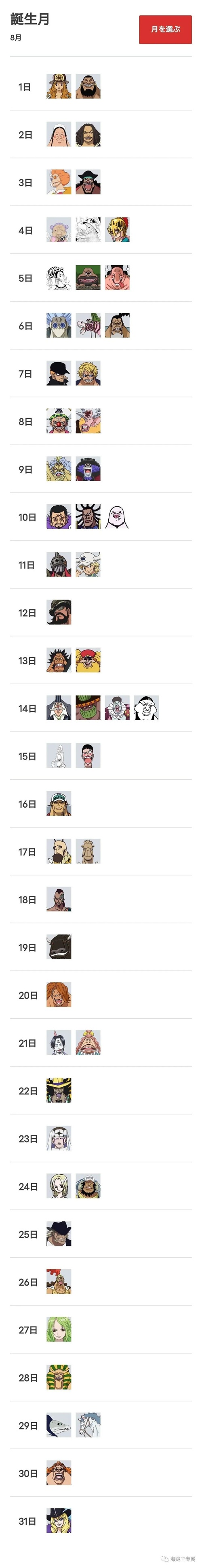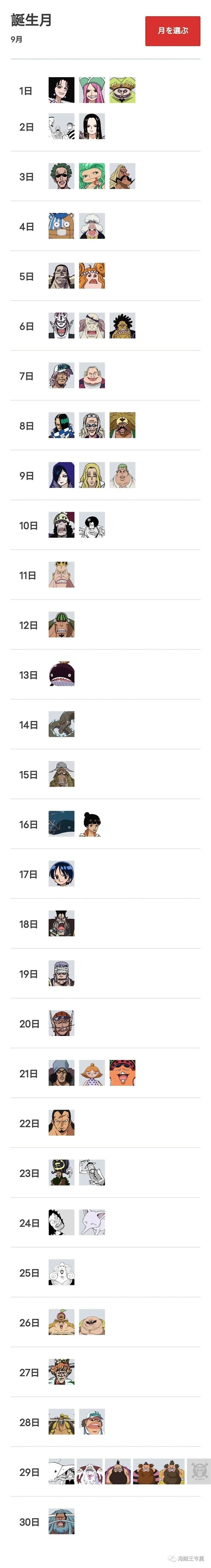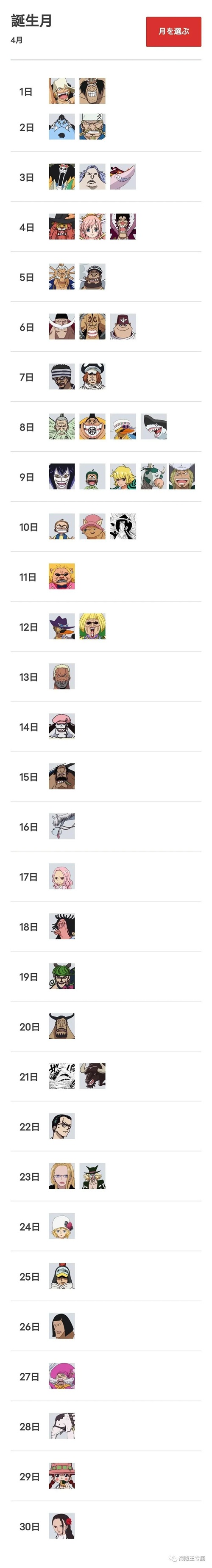 海贼王官方最全角色生日表,来看看你和哪个海贼王人物是同一天生日,人物众多,建议收藏!