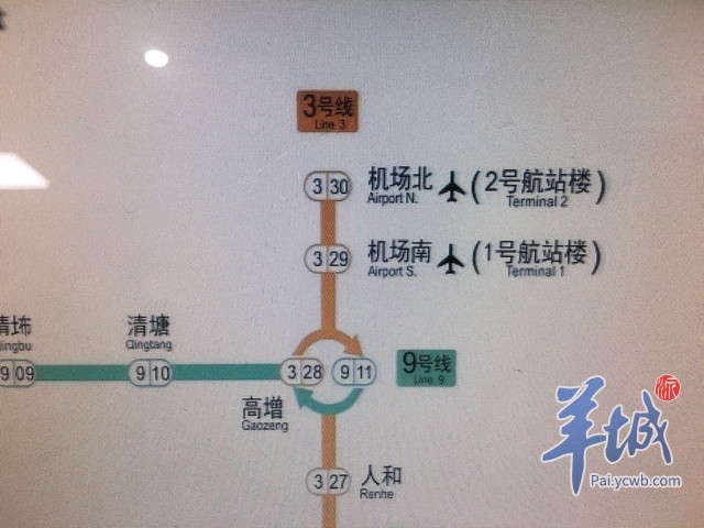 据悉,广州地铁从上周起,开始陆续对现有线路图进行修改。日后,所有车站线路图涉及白云机场航站楼的,均会加上“1号航站楼Terminal 1”、“2号航站楼Terminal 2”字样。