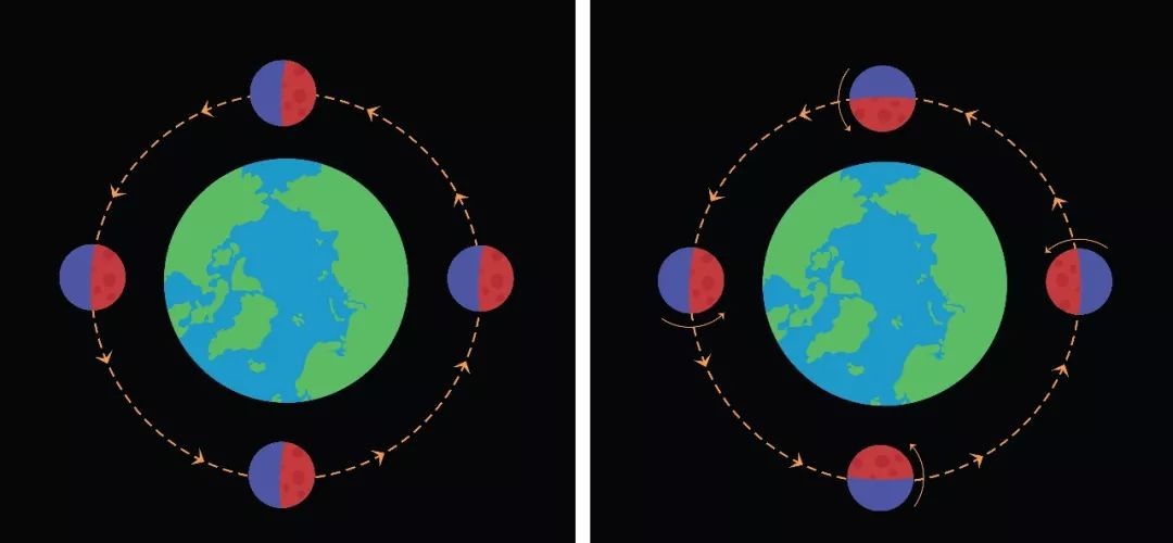 由于潮汐锁定现象,月球永远只有一面朝向地球